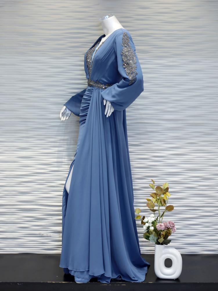 كوني محط الأنظار مع فستان "شهرزاد" الساحر، وهو قطعة تجسد الأناقة الراقية بامتياز. يتميز الفستان بقصة صدر V تبرز جمال العنق بلمسة أنثوية ساحرة، بينما تضفي الأكمام الطويلة لمسة من الوقار والرقي على إطلالتك.